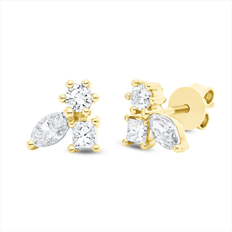Ohrstecker 18 kt GG, 2 Nav. 0,31 ct, I-pi, 2 Princ. 0,17 ct, W-si, 2 Brill. 0,14 ct, I-pi