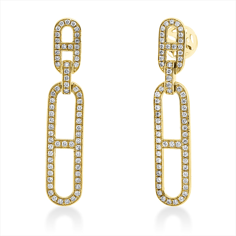 Ohrschmuck 18 kt GG. 92 Brillanten 0.87 ct. TW-si. 38 Brillanten 0.26 ct. TW-si. H:41.8 mm. B:8.0 mm. S:1.6 mm