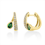 Creolen 18 kt GG, 22 Brill. 0,28 ct, F-vsi/si, 12 Brill. 0,06 ct, F-vsi/si, 2 Tsavorith 0,48 ct grün