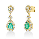 Ohrschmuck 18 kt GG, Fassung rhodiniert, 8 Brill.0,17 ct,TW-si, 64 Brill.0,36 ct,TW-si, 2 Smaragde 0,69 ct