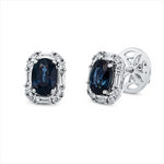 Ohrstecker 18 kt WG, 8 Bag. 0,20 ct, F-vsi/si, 16 Brill. 0,17 ct, TW-si, 2 Saphire 1,32 ct blau