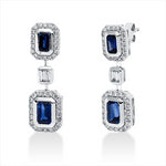 Ohrschmuck 18 kt WG. 40 Brillanten 0.39 ct. TW-si. 4 Baguette 0.14 ct. F-vsi/si. 40 Brillanten 0.21 ct. TW-si. 2 Saphire 1.32 ct blau. 2 Saphire 0.71 ct blau