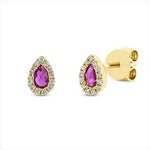 Ohrstecker 18 kt GG, 26 Brill. 0,11 ct, TW-si, 2 Rubine 0,38 ct rot