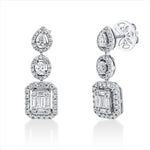 Ohrschmuck 18 kt WG. 104 Brillanten 0.54 ct. TW-si. 2 Oval 0.16 ct. F-vsi/si. 2 Tropfen 0.17 ct. F-vsi/si. 12 Baguette 0.34 ct. F-vsi/si