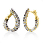 Creolen 18 kt GG. Fassung schwarz rhodiniert. 10 Brillanten 0.19 ct. F-vsi/si. 34 Brillanten 1.16 ct. braun-si. 22 Brillanten 0.91 ct. F-vsi/si. H:20.4 mm. B:14.3 mm. S:4.4 mm