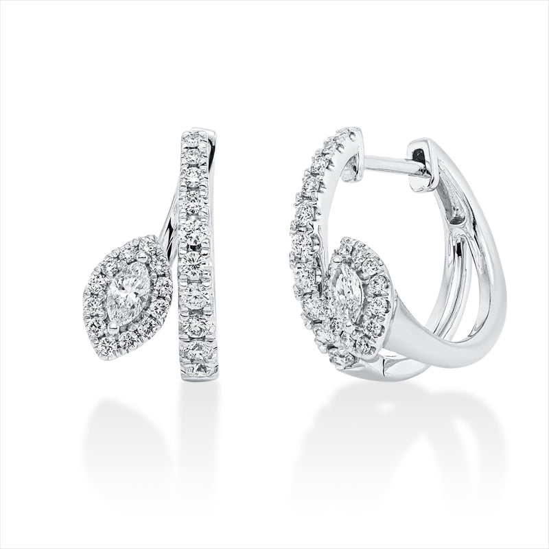 Creolen 18 kt WG, 16 Brill. 0,25 ct, TW-si, 24 Brill. 0,15 ct, TW-si, 2 Nav. 0,17 ct, F-vsi/si, 4 Brill. 0,12 ct, TW-si