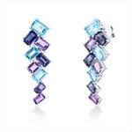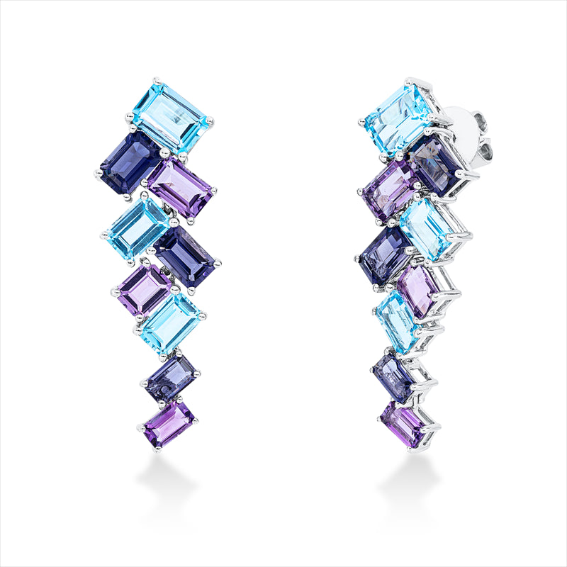 Ohrschmuck 18 kt WG, 6 Iolith 2,60 ct lila, 6 Amethyste 2,50 ct lila, 6 Topase 5,00 ct blau