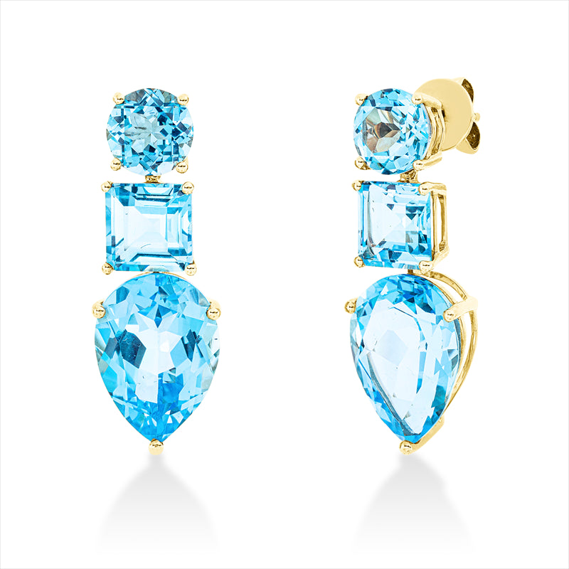 Ohrschmuck 18 kt GG. 2 Topase 4.60 ct blau. 2 Topase 3.50 ct blau. 2 Topase 13.40 ct