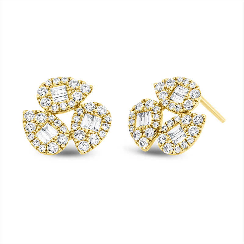 Ohrstecker 18 kt GG. 12 Baguette 0.18 ct. TW-si. 66 Brillanten 0.39 ct. TW-si