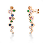 Ohrschmuck 18 kt RG. 4 Brillanten 0.09 ct. TW-si. 14 Saphire 1.07 ct multicolor. 4 Tsavorith 0.21 ct grün. H:27.6 mm. B:7.8 mm. S:2.2 mm