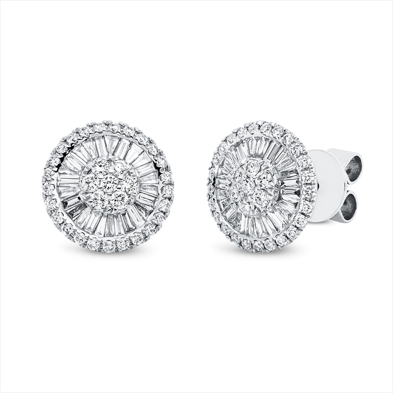 Ohrstecker 18 kt WG, 14 Brill. 0,18 ct, TW-si, 50 Bag. 0,61 ct, TW-si, 50 Brill. 0,22 ct, TW-si