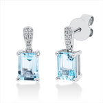 Ohrstecker 18 kt WG. 12 Brillanten 0.06 ct. TW-si. 4 Brillanten 0.01 ct. TW-si. 2 Topase 2.49 ct sky blue. H:12.8 mm. B:5.9 mm. S:4.4 mm