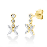 Ohrschmuck 18 kt GG Schmetterling. Fassung rhodiniert. 4 Brillanten 0.05 ct. TW-si. 8 Navette 0.26 ct. TW-si. 2 Brillanten 0.01 ct. TW-si. H:11.8 mm. B:6.1 mm. S:1.8 mm