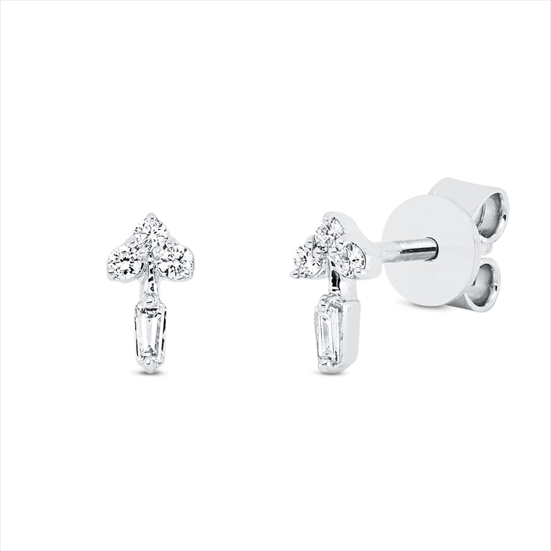 Ohrstecker 18 kt WG, 2 Trap. 0,04 ct, TW-si, 6 Brill. 0,06 ct, TW-si