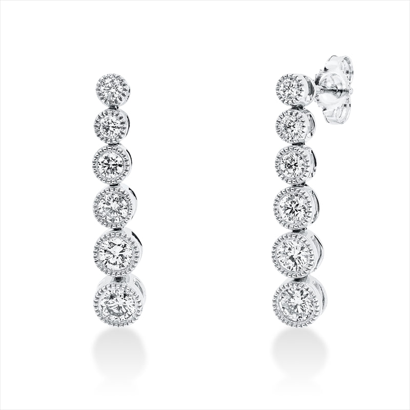 Ohrschmuck 18 kt WG. 12 Brillanten 0.97 ct. TW-si. H:24.0 mm. B:4.6 mm. L:23.8 mm. L:2.4 cm. S:2.8 mm