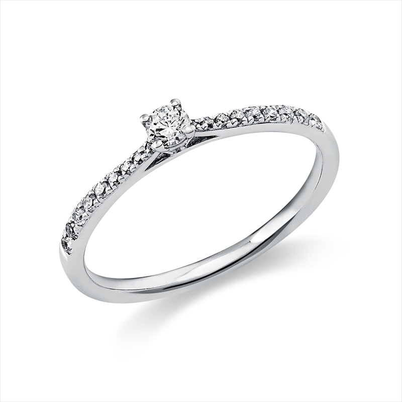 Ring 14 kt WG, 1 Brill. 0,10 ct, TW-si, 18 Brill. 0,12 ct, TW-si