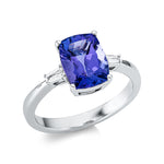 Ring 18 kt WG, 2 Trap. 0,15 ct, TW-si, 1 Tansanit 3,70 ct blau