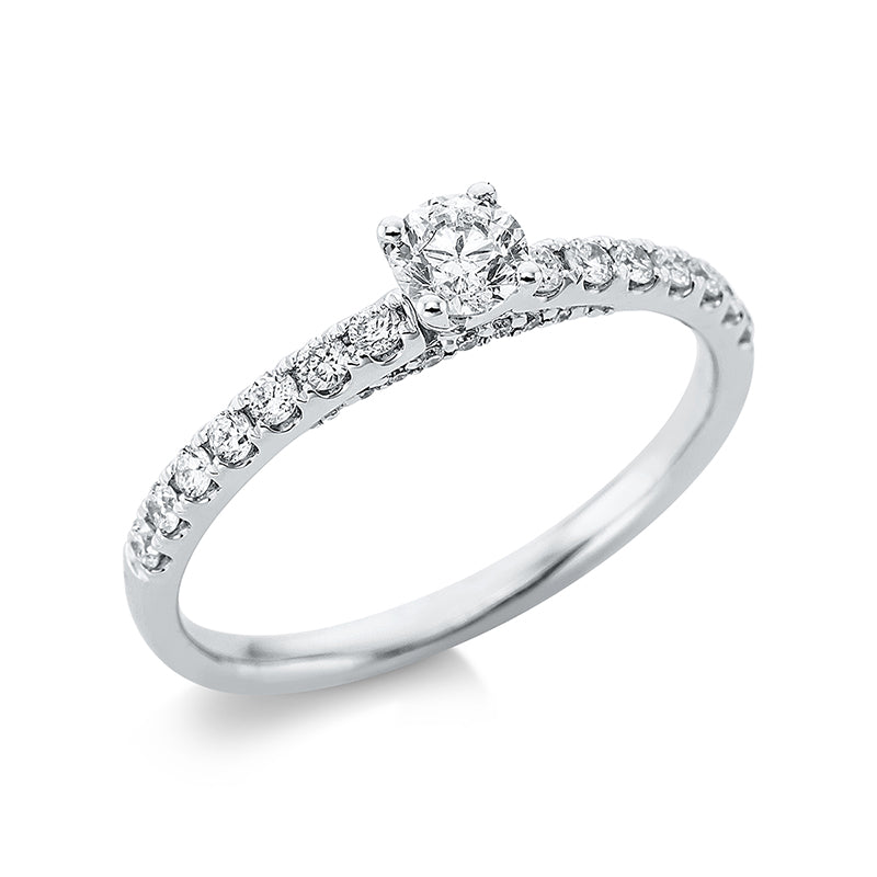 Ring 18 kt WG, 14 Brill. 0,04 ct, TW-si, 1 Brill. 0,24 ct, TW-si, 14 Brill. 0,20 ct, TW-si