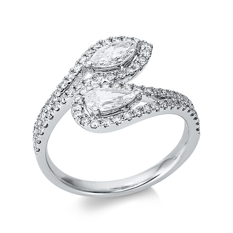 Ring 18 kt WG. 1 Navette 0.30 ct. TW-vsi. 1 Tropfen 0.31 ct. TW-vsi. 71 Brillanten 0.49 ct. TW-vsi. Weite:53.5
