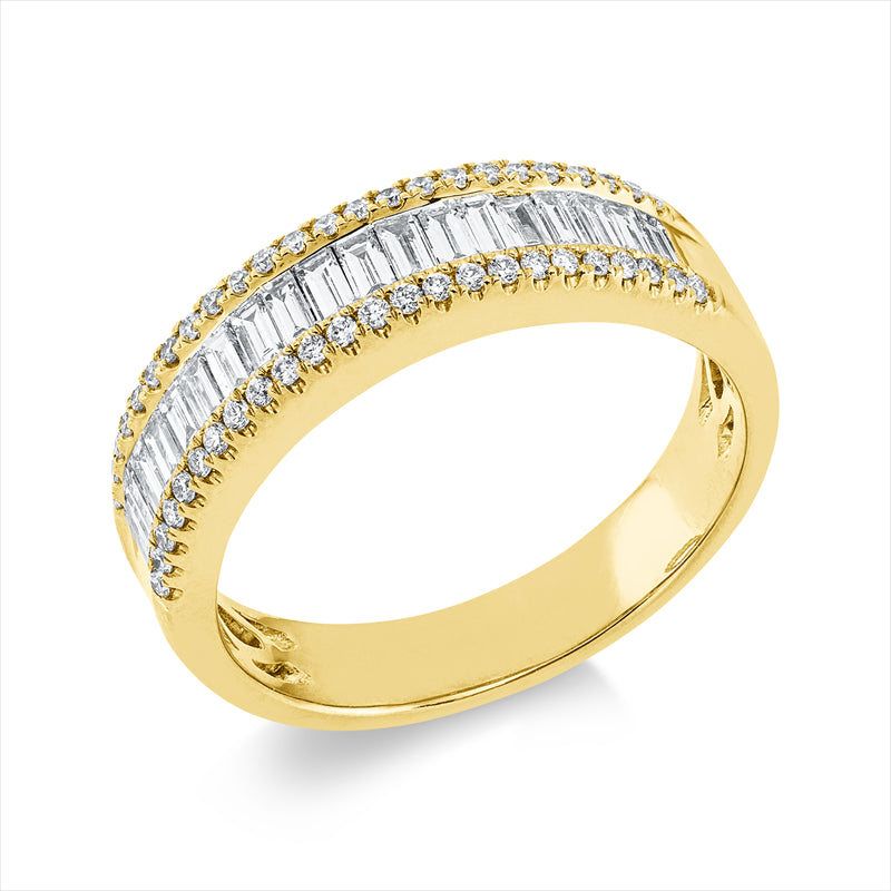 Ring 18 kt GG. 19 Baguette 0.50 ct. TW-si. 48 Brillanten 0.18 ct. TW-si. B:5.3 mm. Weite:53