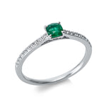 Ring 18 kt WG, 18 Brill. 0,12 ct, TW-si, 1 Smaragd 0,30 ct grün