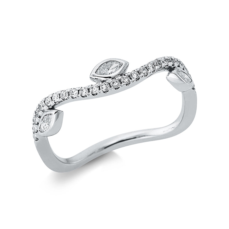 Ring 18 kt WG. 3 Navette 0.11 ct. TW-vsi. 25 Brillanten 0.16 ct. TW-si. B:4.2 mm. Weite:52