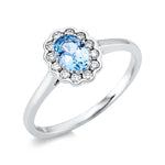 Ring 18 kt WG, 12 Brill. 0,15 ct, TW-si, 1 Topas 0,55 ct blau