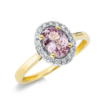 Ring 18 kt GG. 18 Brillanten 0.20 ct. TW-si. 1 Granat 1.04 ct rosa. H:8.5 mm. B:10.4 mm. Weite:54