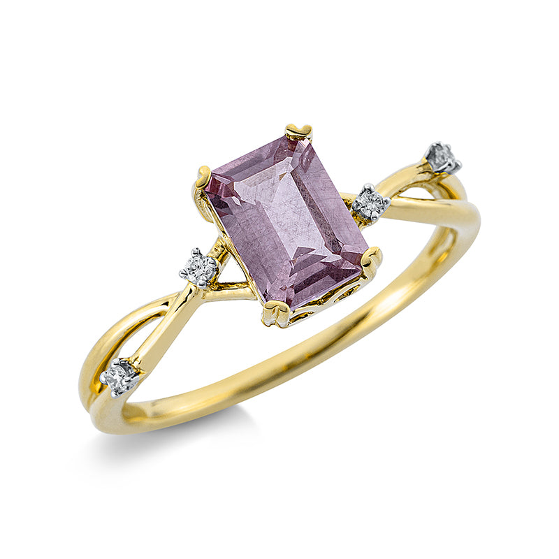 Ring 18 kt GG. 4 Brillanten 0.03 ct. TW-si. 1 Granat 0.90 ct rosa. Weite:54