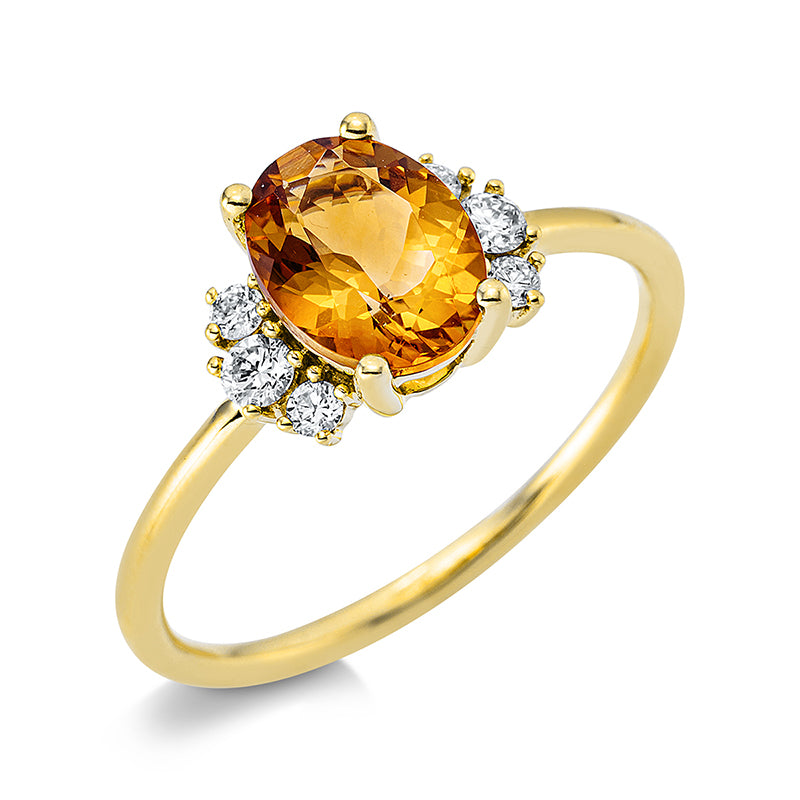 Ring 18 kt GG, 2 Brill. 0,08 ct, TW-si, 4 Brill. 0,07 ct, TW-si, 1 Citrin 1,15 ct gelb