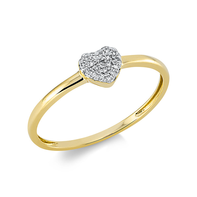 Ring 18 kt GG Herz. Fassung rhodiniert. 19 Diamanten 0.04 ct. W-pi. H:5.3 mm. B:4.8 mm. Weite:54