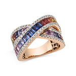 Ring 18 kt RG, 102 Brill. 0,75 ct, W-si, 34 Saphire 3,80 ct fancy