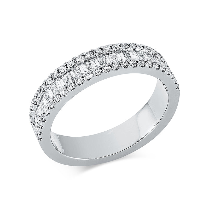 Ring 18 kt WG. 33 Baguette 0.35 ct. TW-si. 48 Brillanten 0.31 ct. W-si. Weite:54