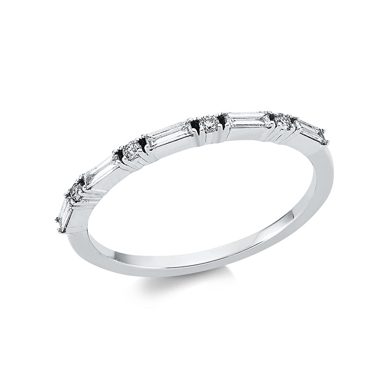 Ring 18 kt WG. 5 Baguette 0.16 ct. TW-si. 4 Brillanten 0.06 ct. W-si. B:1.5 mm. Weite:54