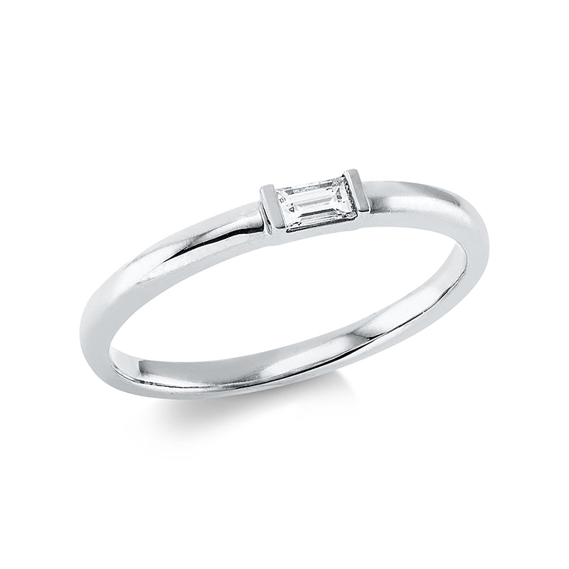 Ring 18 kt WG. 1 Bag. 0.10 ct. TW-si. H:4.5 mm. B:2.2 mm. Weite:52