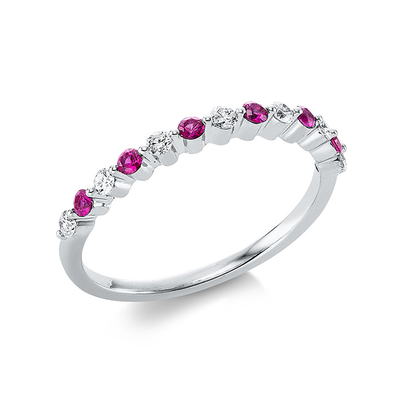 Ring 18 kt WG, 7 Brill. 0,17 ct, TW-si, 6 Rubine 0,17 ct rot