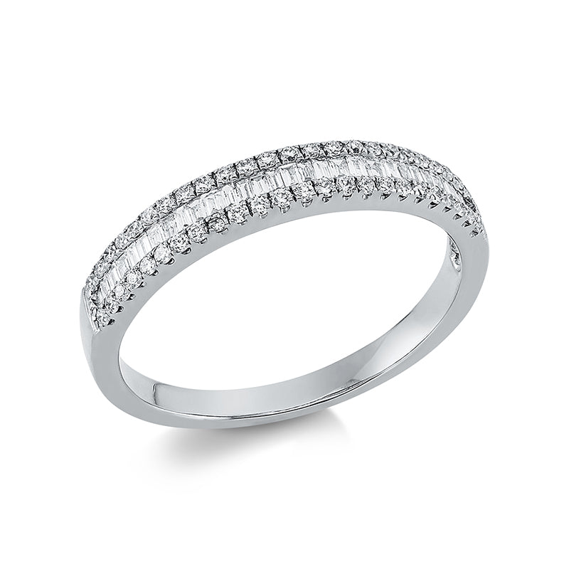 Ring 18 kt WG. 33 Baguette 0.11 ct. TW-vsi. 48 Brillanten 0.20 ct. TW-vsi. Weite:53