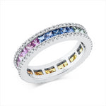 Ring 18 kt WG, 106 Brill. 0,52 ct, TW-si, 29 Saphire 2,21 ct multicolor