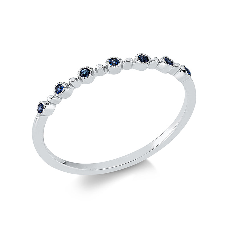Ring 18 kt WG, 7 Saphire 0,08 ct blau