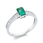 Ring 18 kt WG, 23 Bag. 0,36 ct, TW-si, 1 Smaragd 0,63 ct grün