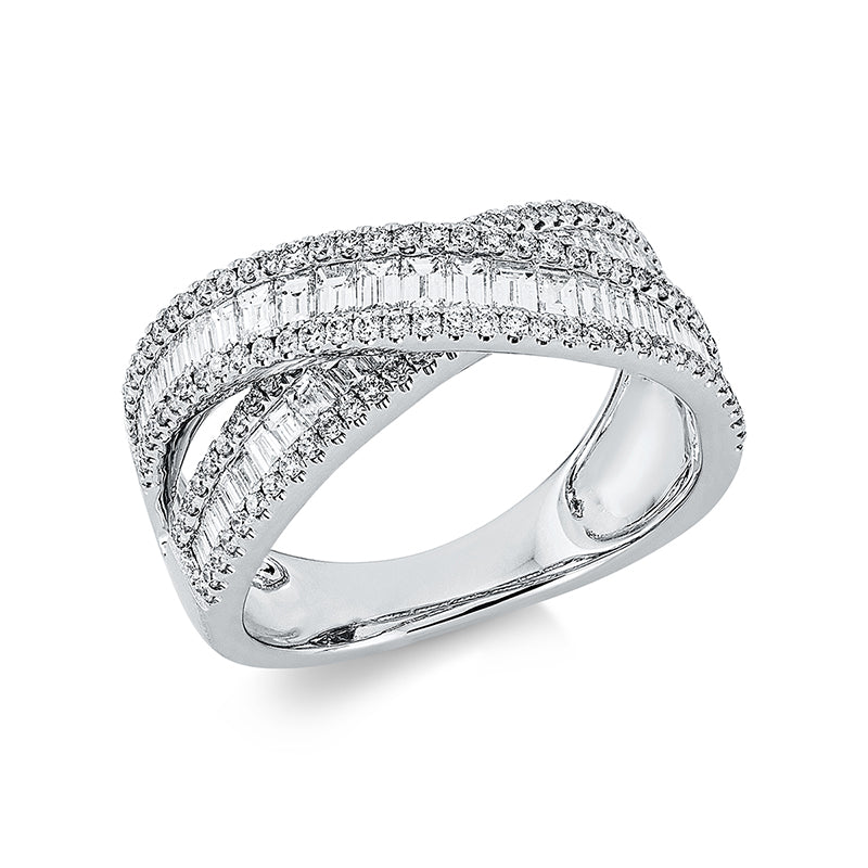 Ring 18 kt WG, 54 Bag. 0,99 ct, E-vsi, 132 Brill. 0,48 ct, TW-si