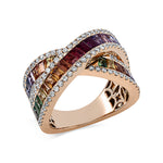 Ring 18 kt RG. 102 Brillanten 0.74 ct. W-si. 34 Saphire 3.78 ct multicolor. B:12.6 mm. Weite:54