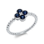 Ring 18 kt WG, 1 Brill. 0,02 ct, TW-si, 4 Saphire 0,61 ct blau
