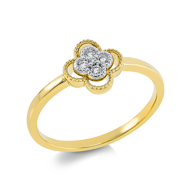 Ring 18 kt GG, Fassung rhodiniert, 4 Brill. 0,08 ct, TW-si, 1 Brill. 0,01 ct, TW-si