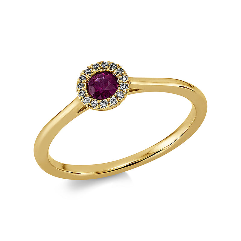 Ring 18 kt GG, 15 Brill. 0,04 ct, TW-si, 1 Rubin 0,22 ct rot