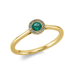 Ring 18 kt GG, 15 Brill. 0,04 ct, TW-si, 1 Smaragd 0,17 ct grün