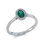 Ring 18 kt WG, 16 Brill. 0,07 ct, TW-si, 1 Smaragd 0,42 ct grün