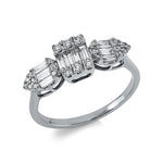 Ring 18 kt WG. 10 Baguette 0.40 ct. TW-si. 24 Brillanten 0.22 ct. TW-si. H:18.3 mm. B:6.9 mm. Weite:54