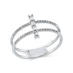 Ring 14 kt WG, 4 Bag. 0,08 ct, F-vsi, 36 Brill. 0,10 ct, F-si