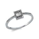 Ring 14 kt WG, 2 Bag. 0,08 ct, F-vsi, 32 Brill. 0,12 ct, F-si